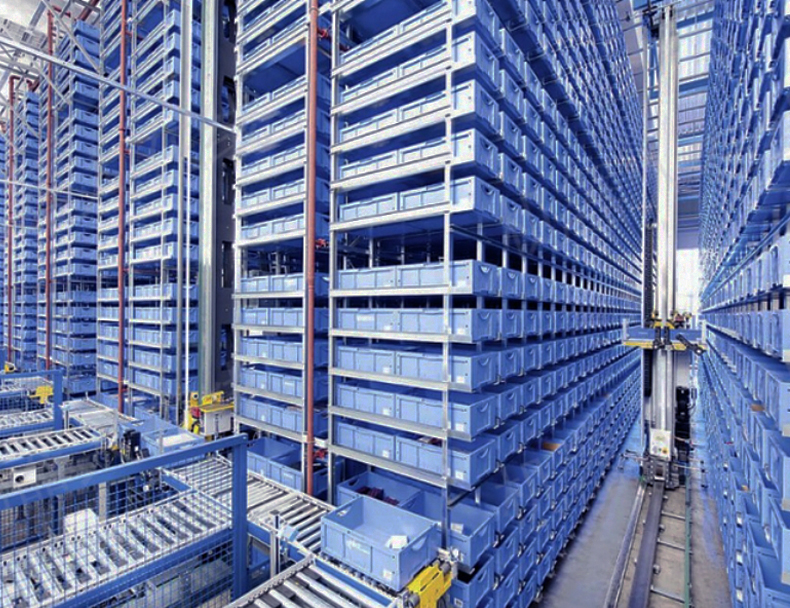 The box-type automated high-bay warehouse is a multi-layer high-bay warehouse system for storing goods, mainly composed of three-dimensional shelves, box stackers, inbound and outbound conveyor lines, WMS/WCS systems, etc. It is a storage solution that uses box stackers to automatically store and re